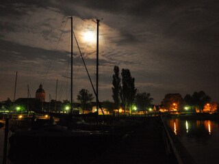 Directamente en el puerto y en el centro a poca distancia, encontrarás varios restaurantes y tiendas, la Boddentherme, el Museo Alemán del Ámbar y muchos otros puntos turísticos destacados.