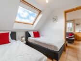 El apartamento "Mühlenblick 05" cuenta con un amplio y luminoso salón-comedor con cocina. Dispone de dos dormitorios con un total de cuatro plazas para dormir, así como un baño con ducha y WC.