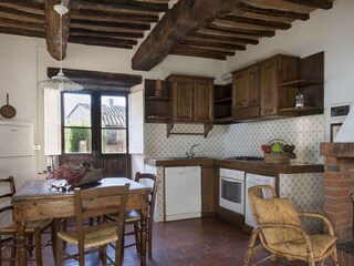 Schöne Wohnung im Erdgeschoss mit einem schönen großen Garten mit fantastischem Blick auf die toskanische Landschaft. Sehr freundliche und sehr hilfsbereite Manager (nicht die Eigentümer). Wohnung voll ausgestattet (Waschmaschine / Geschirrspüler). Rustikales Interieur des Hauses.