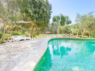 La piscina privada de agua salada, de 8.5m x 5m, está enclavada en una terraza y rodeada de varios árboles. La profundidad del agua varía entre 1m y 1.9m. Seis tumbonas invitan a relajarse - ¡deja...