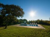 Der Pool ist sehr groß und toll gelegen. Die Terrasse verläuft um das halbe Haus, so dass man flexibel ein Plätzchen zum gemütlichen Beisammensein findet.