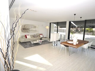 Los espacios se distribuyen hábilmente en 3 plantas. En la planta baja, entras en la amplia sala de estar con comedor y cocina adyacente, que está algo separada del resto por paredes de cristal. Mira un...