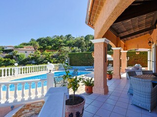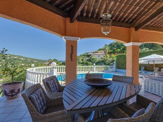 Villa provenzal bien cuidada para hasta ocho personas con piscina y una muy hermosa vista al mar, no muy lejos de las playas.