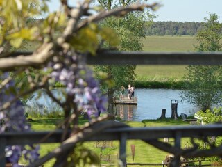 En el granero vecino se encuentra un mercado de antigüedades. Justo enfrente, en el café para cosas antiguas y bonitas, también puedes encontrar pasteles caseros y deliciosos helados. El propietario permite a los huéspedes de KreativKate acceder a su propiedad con acceso al agua para nadar y remar en canoa. Estas están disponibles para alquilar para excursiones en el Löcknitz.