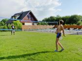 Una zona tranquila, en las afueras de un asentamiento situado a orillas del lago Jamno. La playa costera más cercana está a 4 km (allí también hay un carril bici).