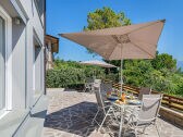 En una villa bifamiliar recién construida con piscina comunitaria en medio del verde (árboles de oliva y frutales) y un jacuzzi (con 6 plazas) en el punto más alto de la propiedad con vistas al lago,...