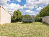 La villa cuenta con un amplio jardín cercado con piscina privada. Un trampolín en el patio es un gran entretenimiento para los niños.
