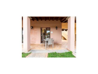 El apartamento está situado en la Residence Baia dei Mirti, un complejo de apartamentos de estilo sardo, en la planta baja o primer piso con terraza o b...